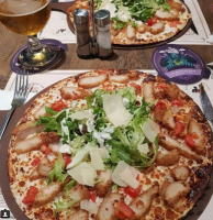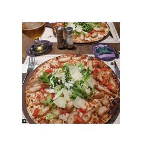 Aiguillette de poulet pané copeaux de Parmesan AOP mozzarella tomates cerises oignons sauce Caesar oignons confits