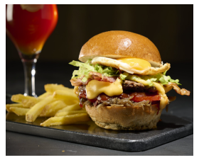 Bun brioché steak haché façon bouchère galette de pomme de terre sauce cheddar salade iceberg et confit d'oignons rouges oeuf au plat