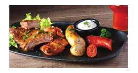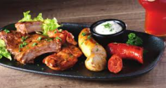 Demi RIBS de porc sauce BBQ demi saucisse à la bière chorizo grillé araignée de porc marinée et tzatziki