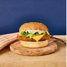 Bun Boulanger, Filet de poulet pané, Cheddar, Salade émincée et Sauce Creamy Ranch
