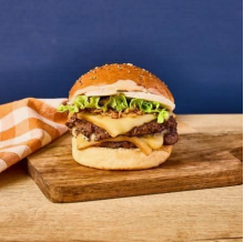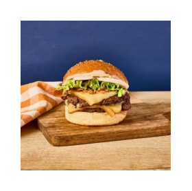 Bun Boulanger, Steak Frais Origine France, Raclette, Oignons Frits, Salade, Sauce American Dream