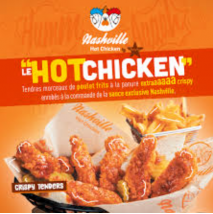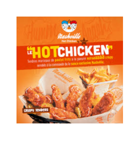 Servis comme à Nashville sur une tranche de pain de mie avec des pickles et enrobés sauce Nashville accompagnés de frites et sauce Mayonnaise aux oignons
