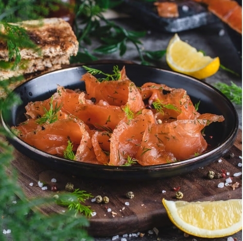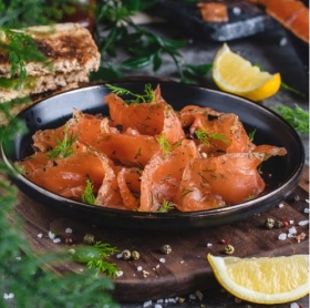 Pesto de cresson, saumon gravlax (fait maison), brunoise courgettes, oignons pickles, sauce citronnée, sésame