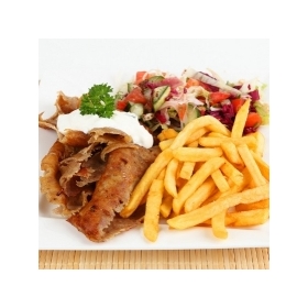 Assiette repas avec viande kebab + salade tomates oignons frites et 1 sauce au choix
