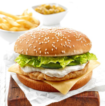 Escalope panée cheddar salade tomates oignons et sauce au choix